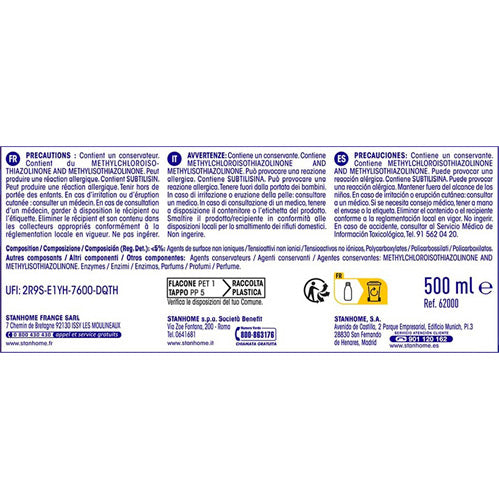 Contiene un conservante. Contiene METILCLOROISOTIAZOLINONA Y METILISOTIAZOLINONA. Puede producir una reacción alérgica. Contiene SUBTILISINA. Puede producir una reacción alérgica. Peligroso. Respetar las precauciones de uso.