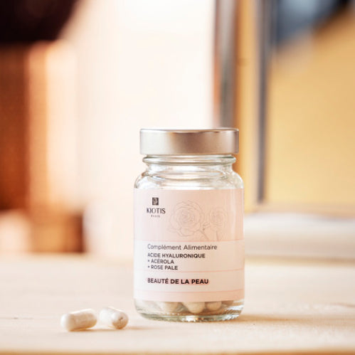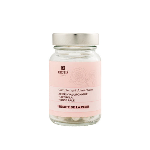 Ingredientes (1 cápsula): Ácido hialurónico 120 mg, Agente de recubrimiento: hidroxipropilmetilcelulosa, Extracto de fruto de acerola (Malpighia punicifolia) 10 mg enriquecido con vitamina C (ácido ascórbico) (16 mg de Vitamina C, 20% VNR*) (maltodextrina), Polvo de Pétalos de Rosa Pálida (Rosa Centifolia) 50 mg. * Valores Nutricionales de Referencia