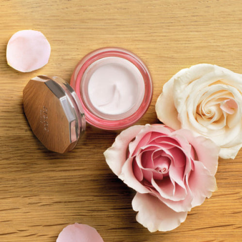 Su fórmula exclusiva está compuesta por un original complejo de Aceites Esenciales de Rosa y Mirra, una auténtica delicia, un regalo para la piel. Con su refinado aroma a savia rosa, esta crema con aceites esenciales te llenará de una sensación de bienestar. Su acabado sedoso aporta a tu piel un efecto satinado. ¡Una experiencia única!