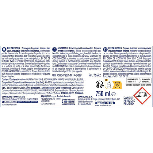 - Jabón (tensioactivo) : consigue una espuma estable y optimiza el poder desengrasante del producto.