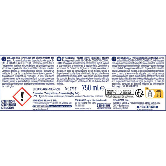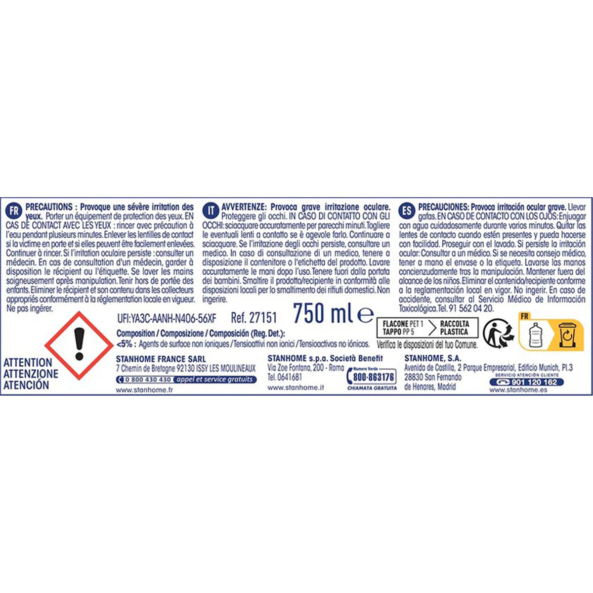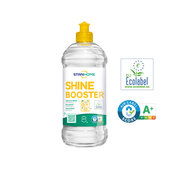 Nos engagements : SHINE BOOSTER Ha obtenido la certificación ECOLABEL Europea. Su fórmula está compuesta por más del 97% de ingredientes de origen natural, incluyendo el agua. Es fácilmente biodegradable en la parte orgánica de la fórmula según las directrices OCDE 301F y ha obtenido la certificación Air Label Score: la calificación A+ garantiza emisiones muy bajas en el aire interior, contribuyendo así a respetar su espacio vital. En cuanto a su envase, contiene un 21,46% de materiales reciclados (el frasco está compuesto por un 25% de plástico reciclado). El envase es mayoritariamente reciclable.