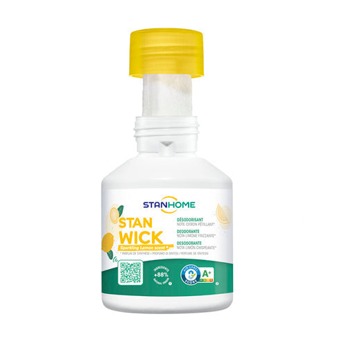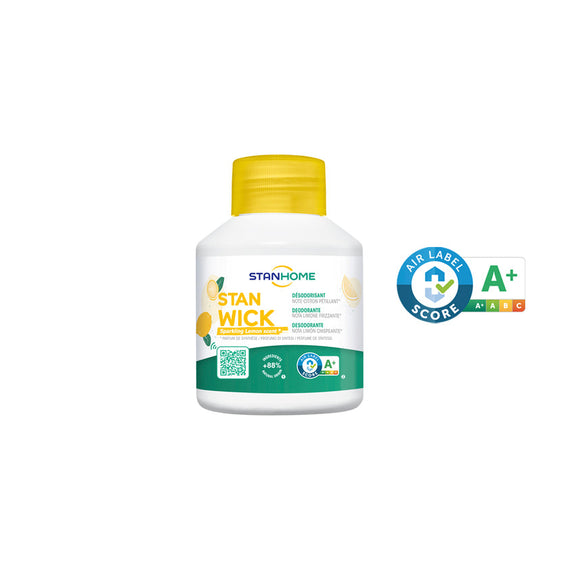 Nuestros compromisos: Stan Wick Sparkling Lemon está compuesto por más de un 88% de ingredientes de origen natural, incluida el agua, y ha obtenido la certificación Air Label Score: la calificación A+ garantiza emisiones muy bajas al aire interior y contribuye así a respetar el espacio vital. En cuanto a su embalaje, es totalmente reciclable, incluida la mecha.