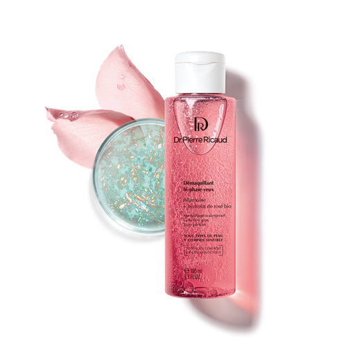 Agite el frasco para mezclar bien las dos fases del producto y aplíquelo en los ojos delicadamente con un algodón. No aclarar. Completa con un desmaquillante facial.