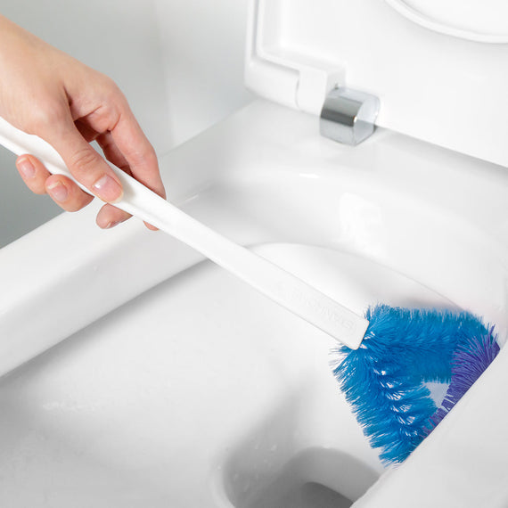 Su forma curva le permite llegar a los lugares más inaccesibles y sus fibras de alta calidad friegan eficazmente respetando las superficies. Su compañero, el portaescobillas WC BOX, es ideal para guardar y secar el cepillo de forma higiénica y discreta. Ideal para la limpieza del interior y debajo de los bordes del bol. El color blanco de este accesorio (mango del cepillo + base) permite que esté ahí, siempre presente, pero de forma discreta...